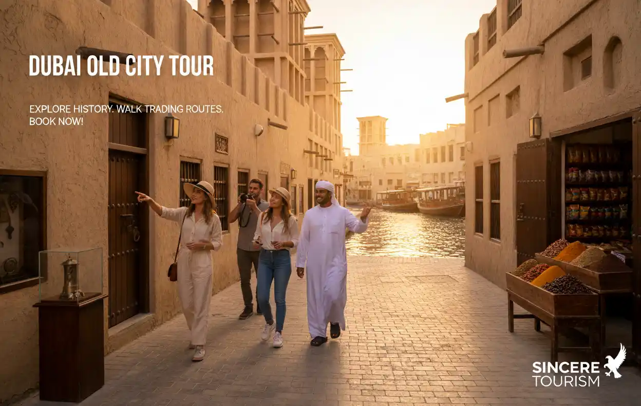 Dubai Old City Tour is the best way to explore the historic side of the city. This guided experience with Sincere Tourism takes you through traditional neighborhoods, heritage areas, and old trading routes that show how Dubai developed over time.